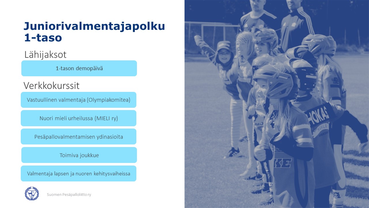 ⚾ Tarkoitettu useamman vuoden valmentaneille juniorivalmentajille (juniorivalmentajapolku) tai aloittaville aikuisten valmentajille