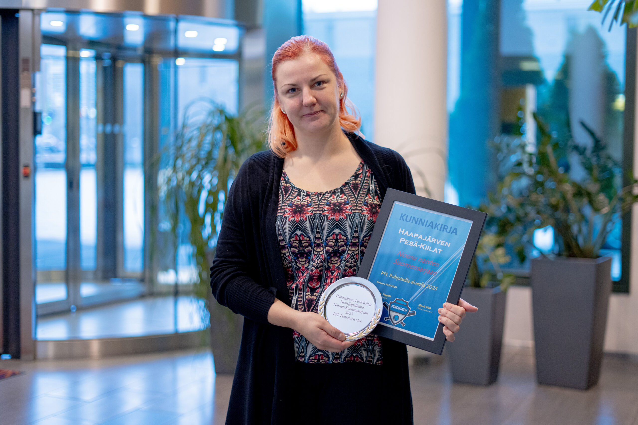 Oulun Lippo Junioreista palkinnon vastaanottivat toiminnanjohtaja Esa Pietiläinen sekä junioripäällikkö Ninni Fasse.