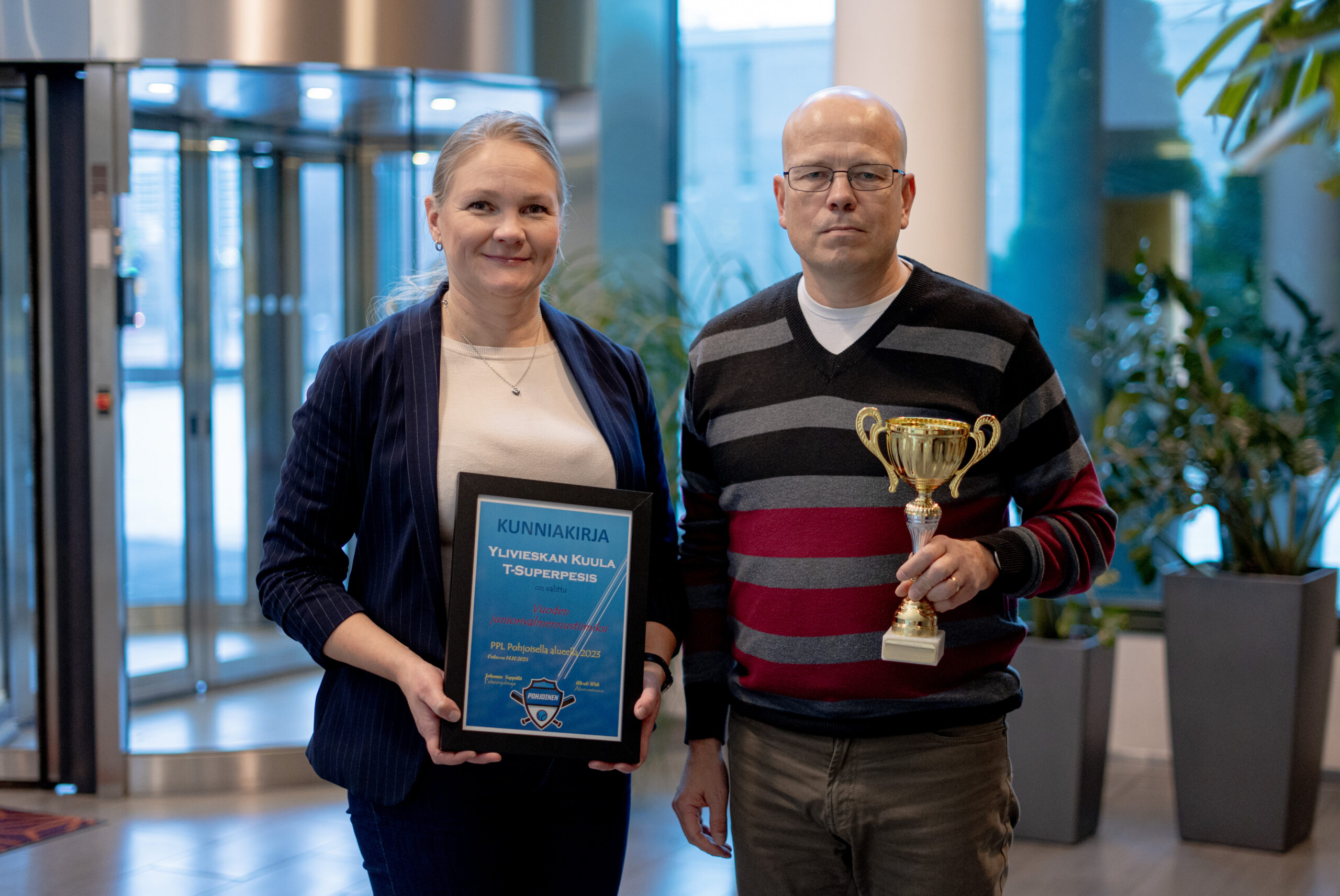 Ylivieskan Kuula saavutti seurahistoriansa ensimmäisen Suomen mestaruuden, kun Kuula juhli tyttöjen Superpesiksen mestaruutta! Palkinnon vastaanottivat pelinjohtajat Johanna ja Toni Seppälä.