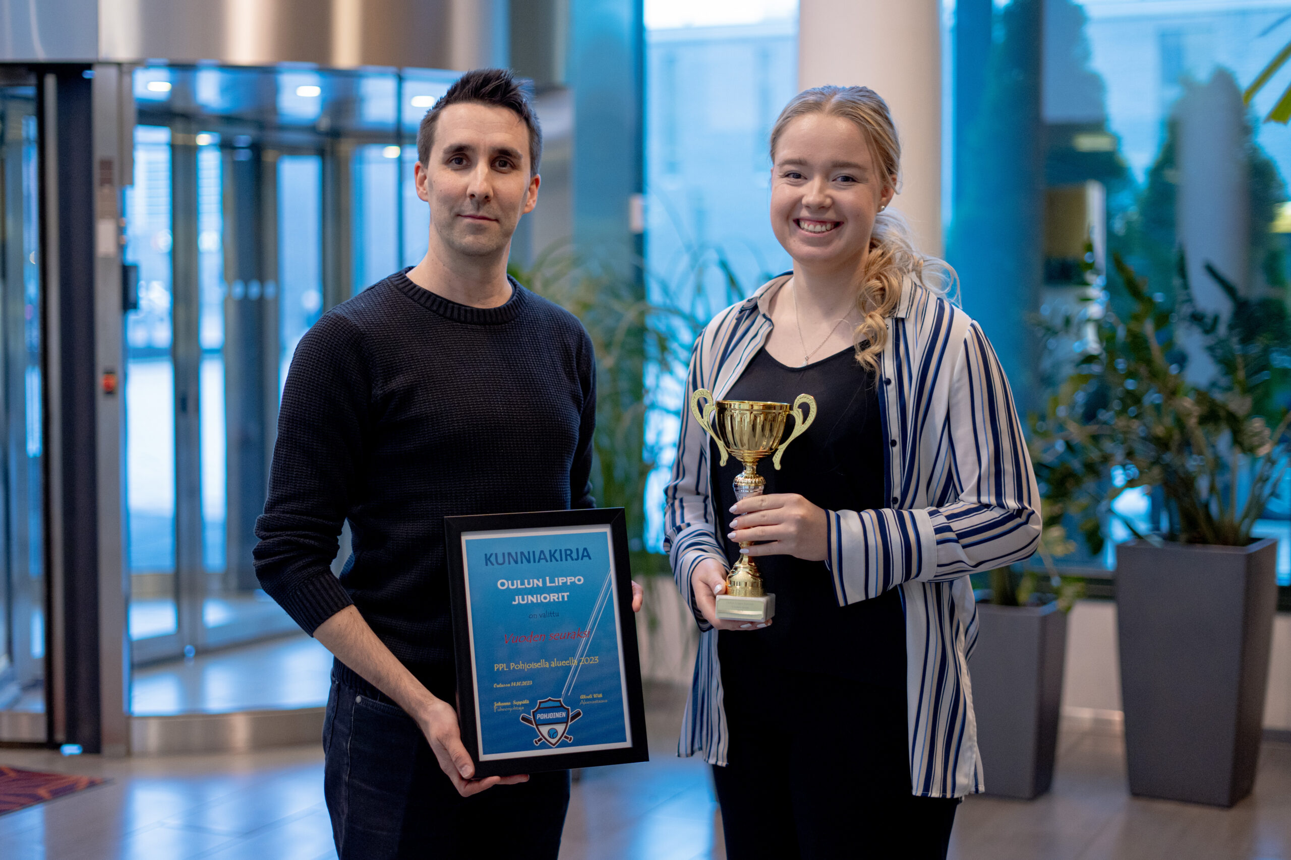 Oulun Lippo Junioreista palkinnon vastaanottivat toiminnanjohtaja Esa Pietiläinen sekä junioripäällikkö Ninni Fasse.