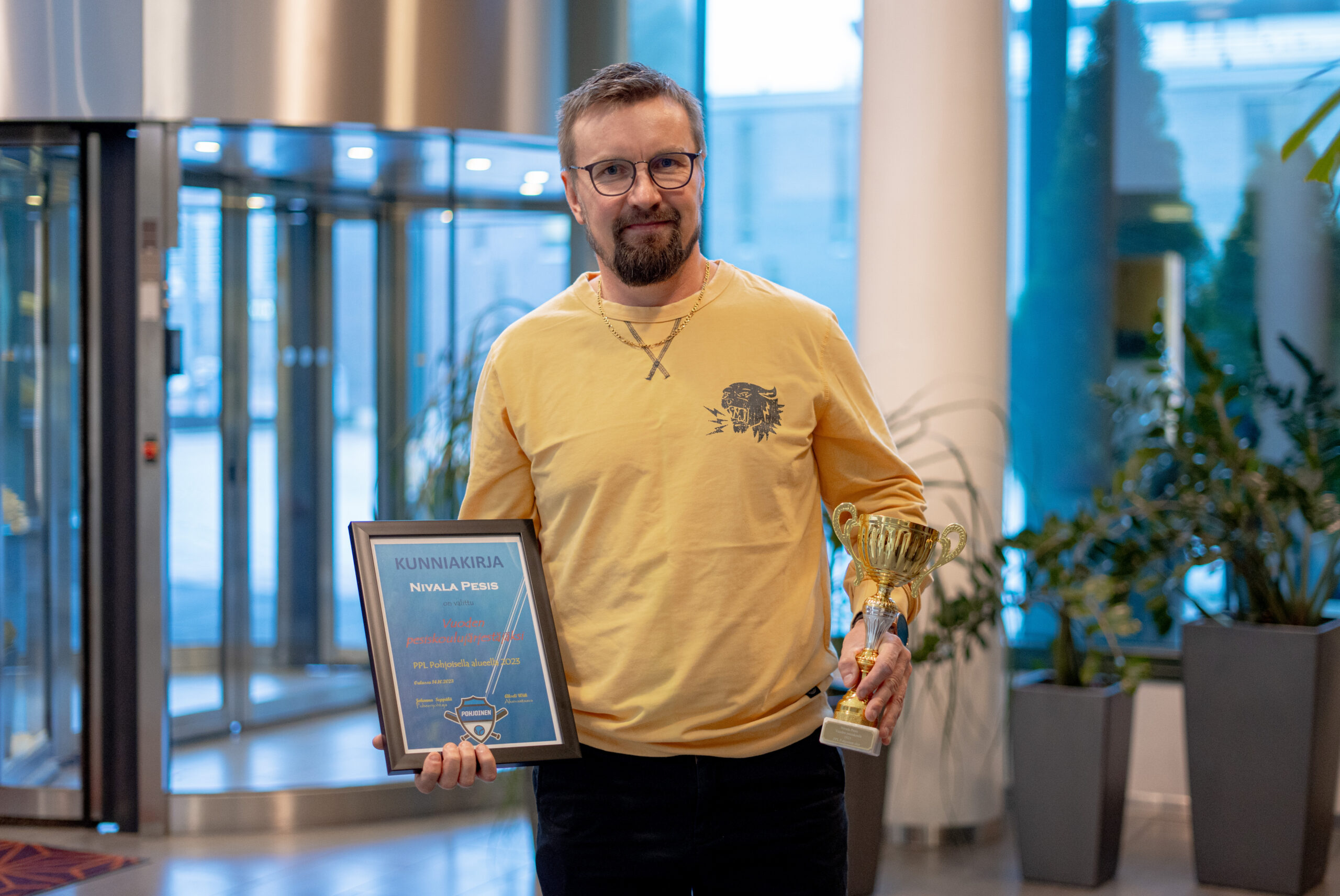 Nivala Pesiksen puolesta palkinnon vastaanotti puheenjohtaja Heikki Kumpula.
