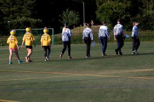 Pinja Vattulainen (4. oikealta) tuomaroi Nuorisoleirillä arvo-ottelussa. Kuva: Hanna Heinonen
