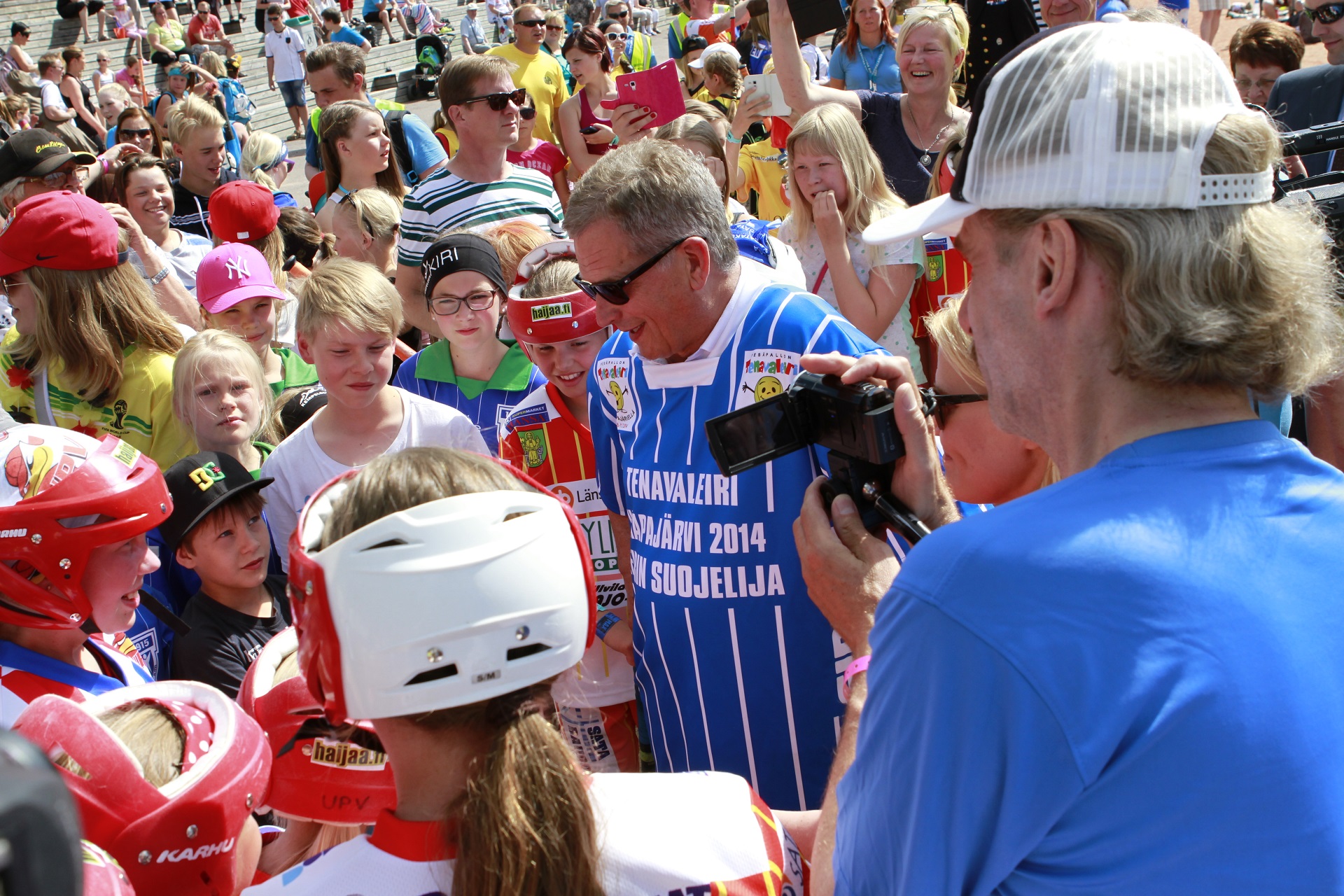 Presidentti Sauli Niinistö vieraili Haapajärven Tenavaleirillä 2014. Kuva: Wesku Luhtala