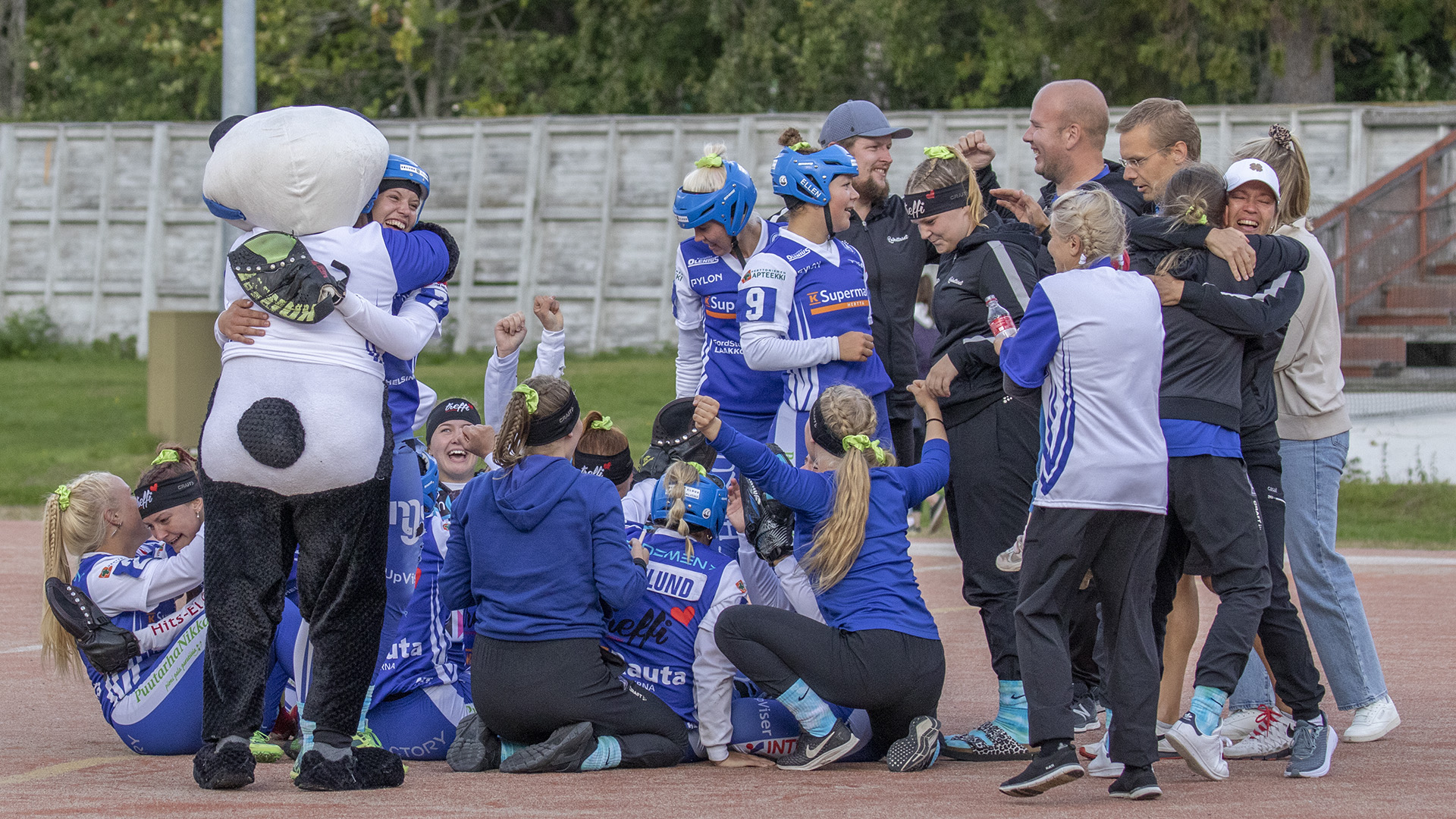 Roihuttaret hävisi vain kaksi ottelua naisten Ykköspesiksessä kaudella 2020. Ilo oli ylimmillään, kun nousu Superpesikseen varmistui. Kuva: Pasi Kettunen