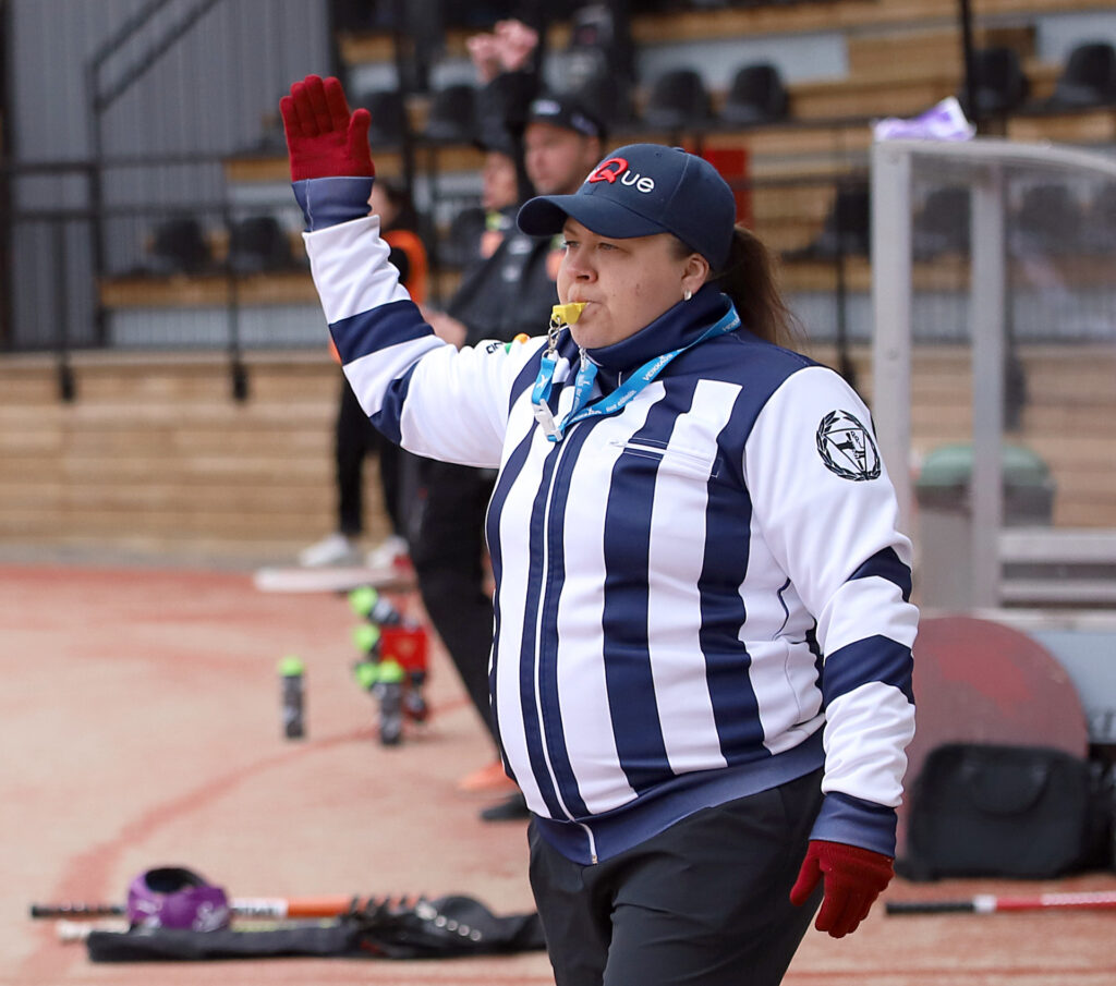 Suvi Kaukovalta toimii miesten Itä-Länsi-ottelun pelituomarina Tampereella 9.7. Kuva: Niilo Hirvonen