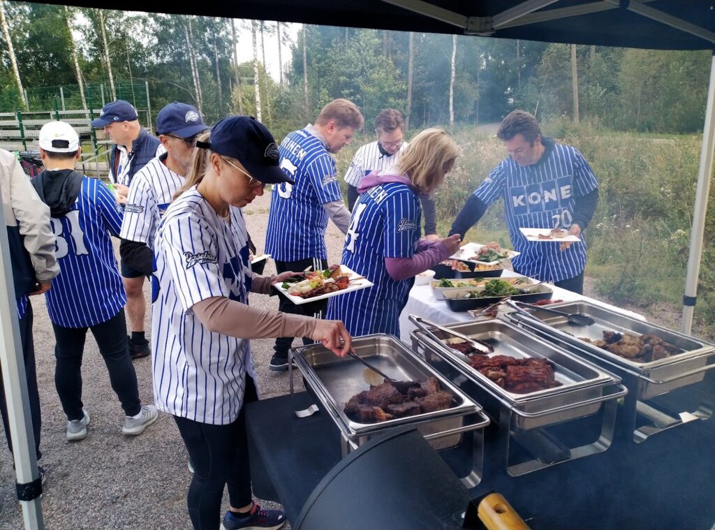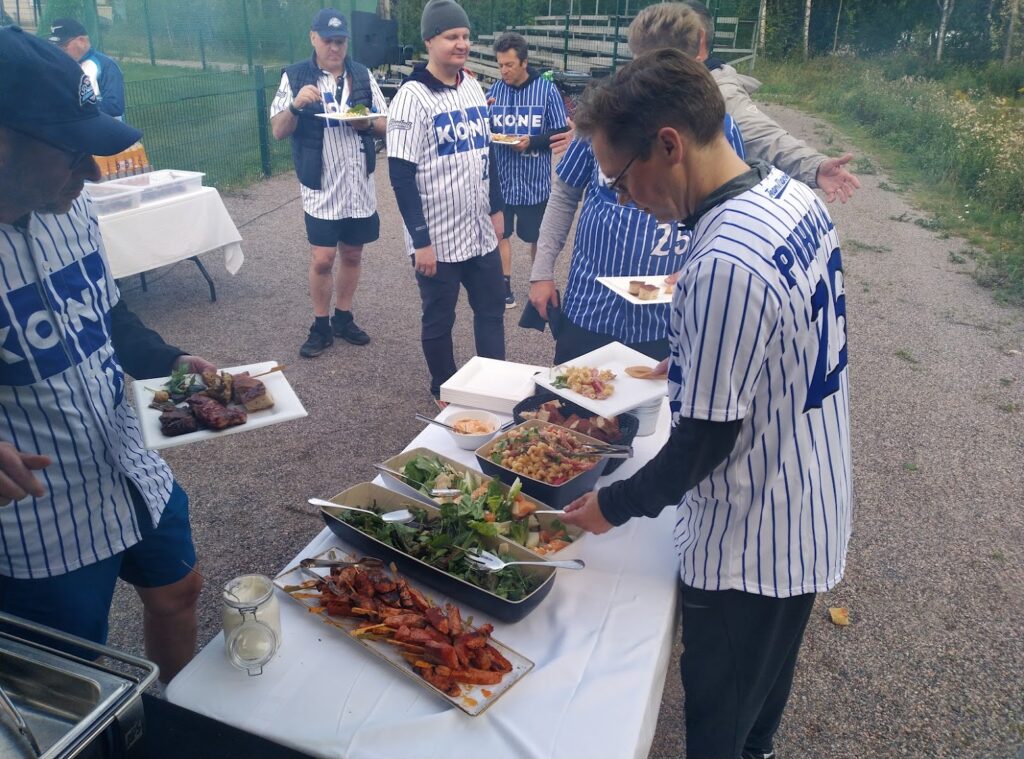 Jälkipelit pelattiin sitten kentällä musiikin säestyksellä ja ennen kaikkea nauttien Tommy’s Kitchenin mahtavasta BBQ illallisesta sekä tietysti Fat Lizard panimon jenkkityylisistä oluista.