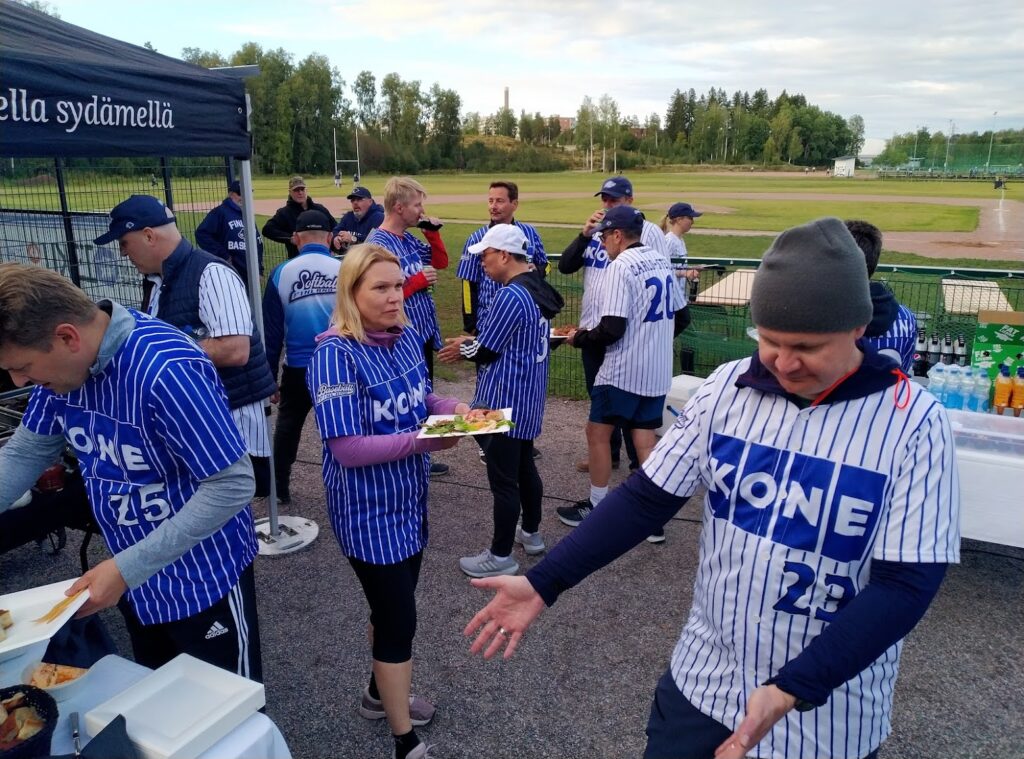 Kokouksesta tiimi siirtyi Myllypuron baseball kentälle, jossa vetovastuun ottivat baseball maajoukkueiden pelaajat, valmentajat ja huoltajat.
