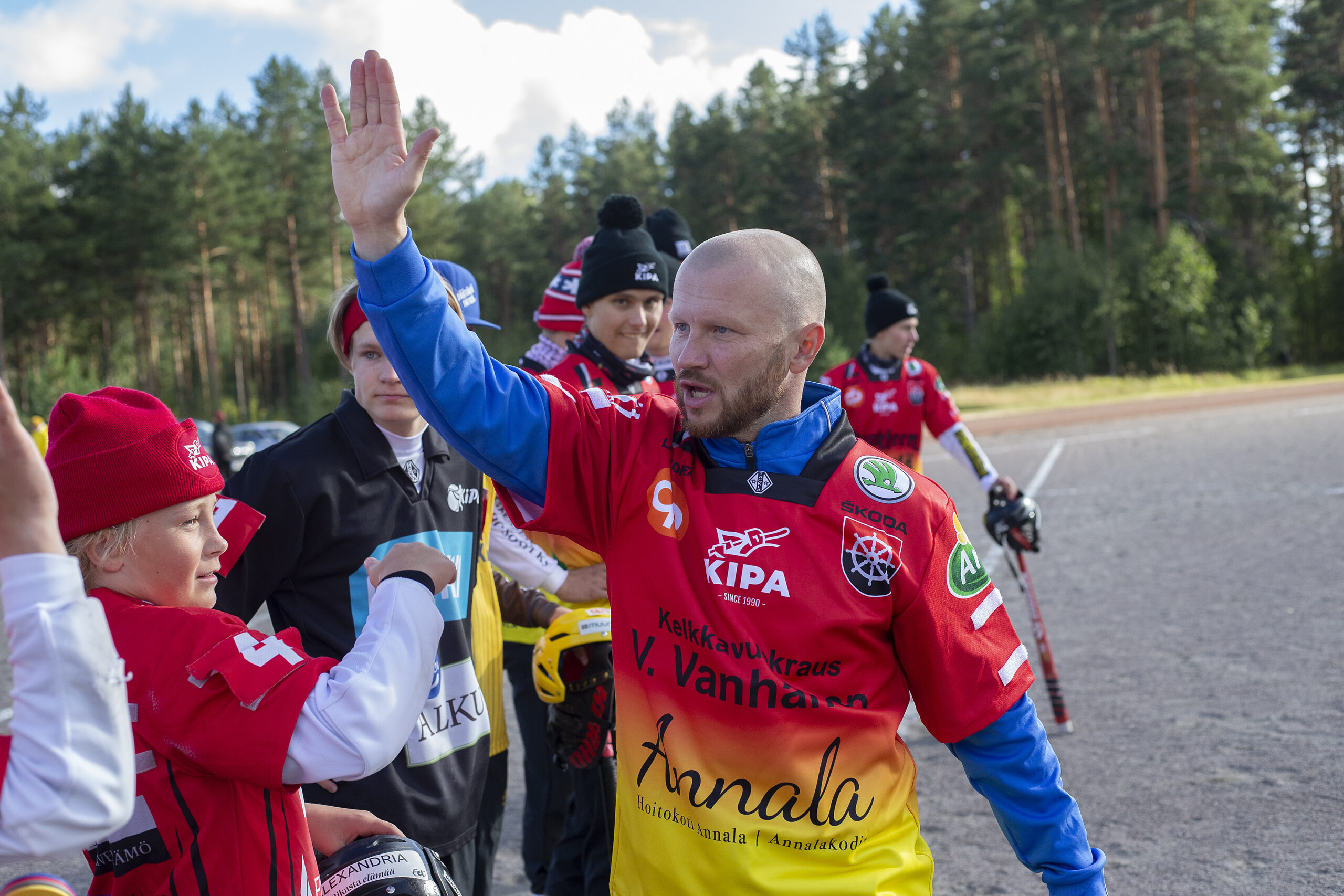Jani Halme suoritti Isät vastaan Pojat -ottelun avausheiton. Kuva: Lauri Heino