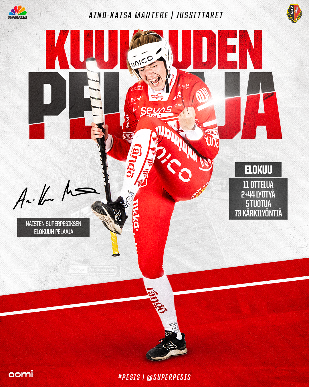 Aino-Kaisa Mantere oli yksi tärkeimmistä yksittäisistä tekijöistä varmistamaan Seinäjoen Maila-Jusseille historiallisen välieräpaikan. Pudotuspelien lyöjä- ja tehotilastojen ylivoimainen ykkösnimi iski tukun tärkeitä juoksuja ja toi joukkueensa useasti peliin mukaan, kun sille oli tarvetta. Kuudesti ykkös- ja kahdesti kakkospalkinnolla ansioitunut Mantere moukaroi tilastoihin elokuun 11 ottelussa 2+44 lyötyä ja 73 kärkilyöntiä sekä toi päälle viisi juoksua. Kuuden vuoden tauon jälkeen Itä-Länsi-otteluun palannut Mantere teki senkin tyylillä ja vei kolmannessa Itä-Lännessään kentän parhaan pelaajan pystin ensimmäistä kertaa urallaan.