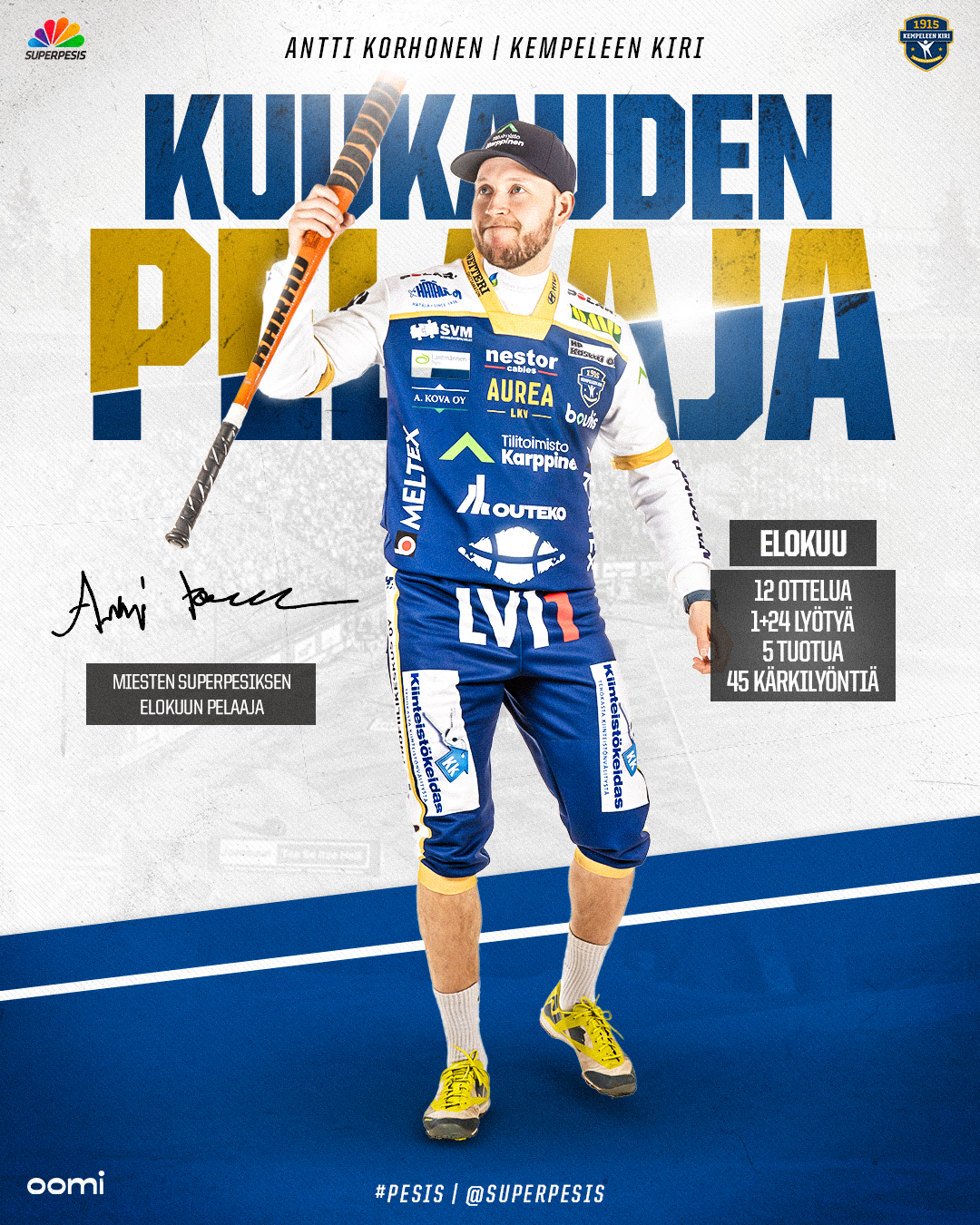 Antti Korhonen on ollut pudotuspeleissä paras numerolla lyövä kotiuttaja. Erinomaisesti niin lyöntipaikalla kuin ulkona etukenttäpelaajana loistanut Korhonen on vaikuttanut panoksellaan vahvasti KeKin historialliseen välieräpaikkaan ja ensimmäiseen välierien otteluvoittoon. Elokuun 12 ottelussa kuukauden pelaaja takoi tehot 1+24 lyötyä, 5 tuotua ja 45 kärkilyöntiä sekä pokkasi kolmesti joukkueensa parhaan pelaajan palkinnon.